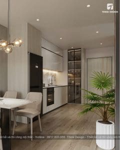 Căn hộ được thiết kế theo phong cách hiện đại và tối giản, tạo nên một không gian sống ấm cúng nhưng vẫn sang trọng. Tông màu trung tính kết hợp với chất liệu gỗ tự nhiên mang lại cảm giác gần gũi và thanh lịch. Thiết kế mở giữa khu bếp và phòng khách giúp tối ưu diện tích, tăng sự kết nối trong không gian. Cửa kính lớn kết hợp rèm mềm mại giúp tận dụng ánh sáng tự nhiên, mang đến sự thoáng đãng và thư giãn. Đây chính là lựa chọn lý tưởng cho những ai yêu thích sự tiện nghi và tinh tế trong từng chi tiết.