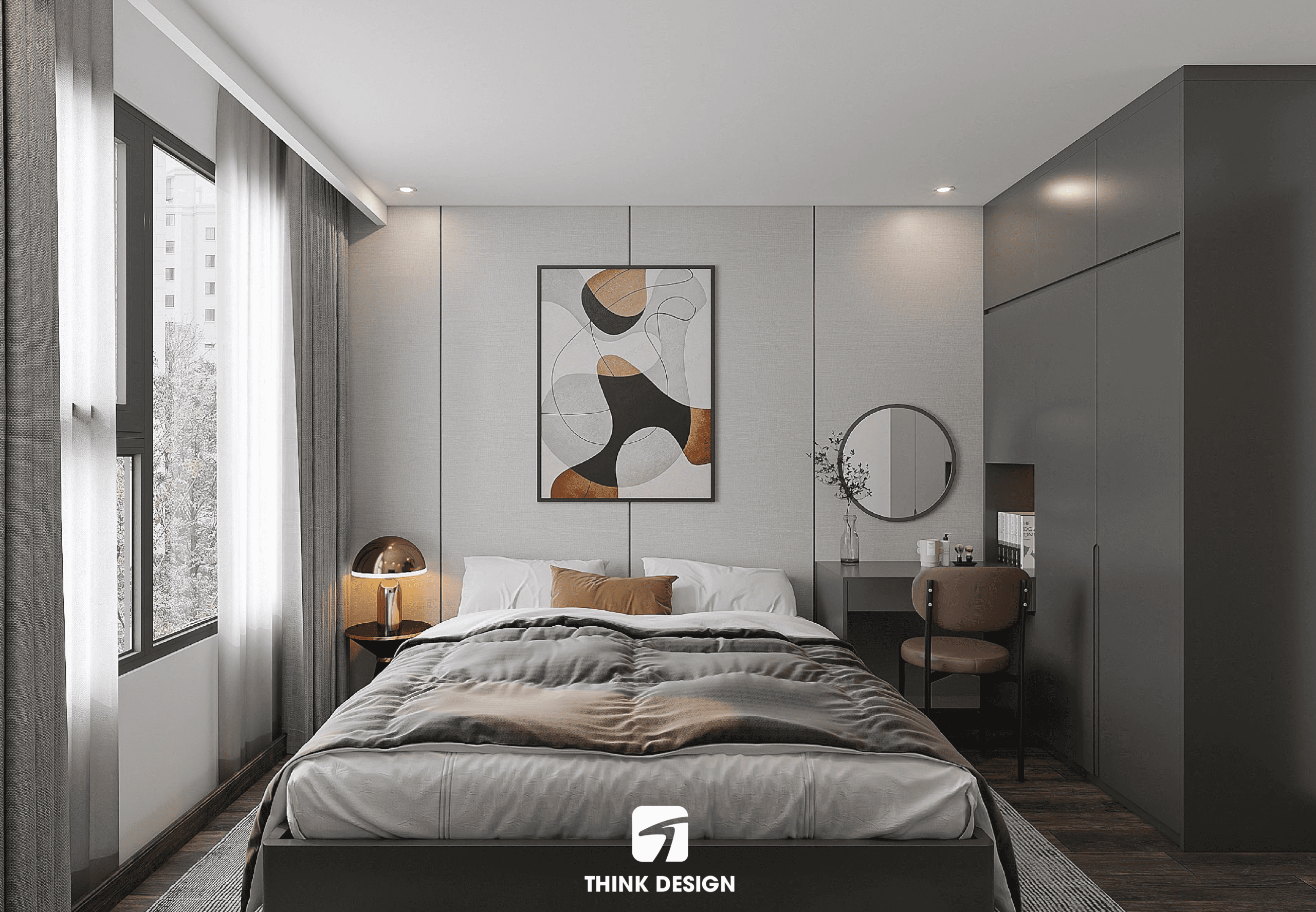 Think Design còn tinh gọn các chi tiết để tối ưu diện tích, tạo nên không gian thoáng đãng cho phòng ngủ, mang đến trải nghiệm nghỉ ngơi tuyệt vời cho gia chủ.