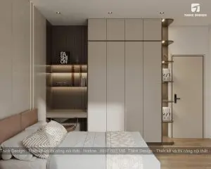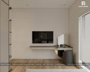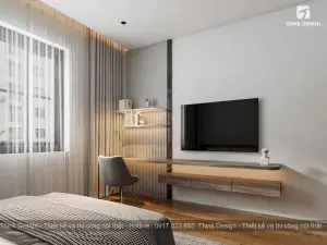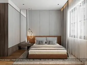 Phòng ngủ thứ nhất tại tầng 3 được bố trí khoa học, tận dụng hợp lý diện tích sàn và ánh sáng tự nhiên. Đây là không gian nghỉ ngơi riêng tư, đảm bảo sự yên tĩnh và tiện nghi cho người sử dụng. Thiết kế đơn giản, gọn gàng, dễ dàng điều chỉnh nội thất theo thói quen sinh hoạt của từng thành viên trong gia đình.