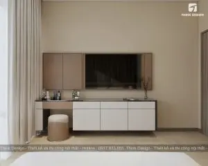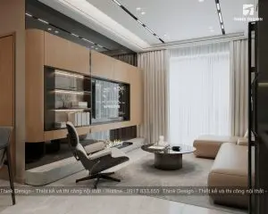 Phòng khách tầng 2 hoạt động như một không gian phụ – nơi mỗi thành viên có thể tự do sử dụng để thư giãn, giải trí hoặc làm việc riêng. Đây cũng có thể là nơi lý tưởng cho trẻ em vui chơi hoặc học tập, khi bố mẹ cần tách biệt tiếng ồn khỏi các khu vực khác. Tùy vào mục đích sử dụng, không gian này có thể được sắp xếp linh hoạt, miễn là vẫn đảm bảo sự thông thoáng và gọn gàng.