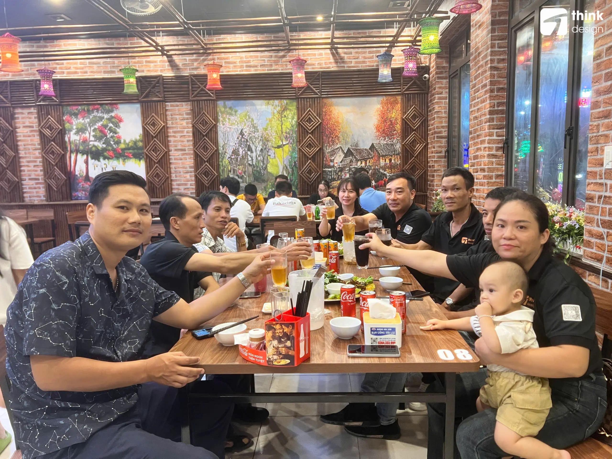 Sau khi kết thúc buổi họp tổng kết, toàn thể thành viên của Think Design đã cùng nhau tham gia một buổi liên hoan thân mật. Đây không chỉ là dịp để các thành viên thư giãn sau những giờ làm việc căng thẳng, mà còn là cơ hội để gắn kết, chia sẻ và tạo nên tinh thần đoàn kết mạnh mẽ trong công ty. Những nụ cười, những câu chuyện hài hước và những khoảnh khắc đáng nhớ đã làm cho buổi liên hoan trở thành một kỷ niệm đẹp, củng cố thêm sự gắn bó và lòng yêu nghề trong mỗi nhân sự của Think Design.